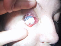 Madziu, a nie prościej iść na jakiś dyżur okulistyczny, czy nawet chirurgiczny? Sama się za to nie bierz, bo możesz zrobić jeszcze gorzej, niż jest.